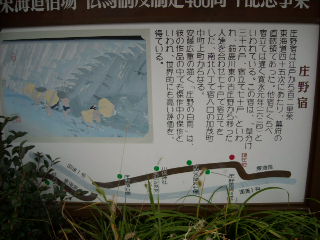 庄野宿の案内看板がありました。看板によりますと、安藤広重描くところの「庄野の白雨」は彼の作品の中でも傑作中の傑作だそうです。そういえば美術の教科書で見たように思います。