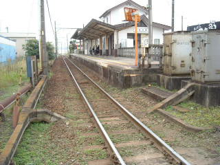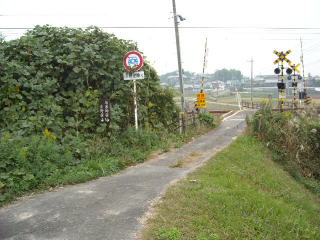 近鉄内部線を横切ります。駅の名前も追分駅です。この写真ではわかりにくいですが、いつも見る電車の線路より幅が狭いようです。