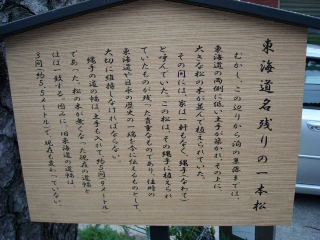 根元の説明板によると「東海道名残りの一本松」だそうです。沿道多数植えられていた松のうち、ただ一本生き残った貴重な松とのことです。この木の生命力の強さを感じない訳にいきません。