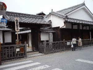 草津本陣前まで来ました。旧東海道で唯一現存する本陣だそうです。本陣内は見学者に開放されています。江戸時代の頃そのままに本陣入り口には「松平出羽守宿」と墨書きされた立札が掲げられている。出羽守様が今夜はお泊りのようです。