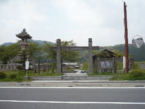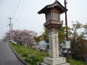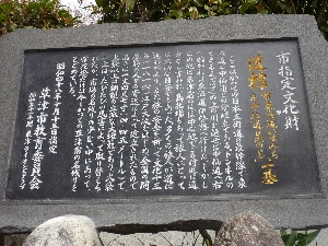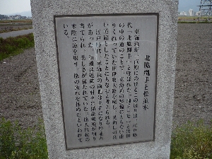 横田の渡しの対岸に着きました。写真では分かりにくいですが、巨大な常夜燈が建っています。その際には説明板があります。