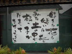 愍念寺前通過。「好きな花も嫌いな花もみな土の中で 根っ子がだまってささえている」と記されています。「好き嫌い」は、個人の身勝手な思い込みですものね、他に押し付けてはいけませんね。
