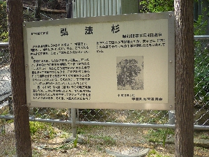 「弘法杉」の案内看板がありました。旧東海道をまたぐ天井川の堤の上に樹齢750年になる。杉があるようです。樹高26m周囲6m。一説によれば、弘法大師(空海)が植えられたとのことです。