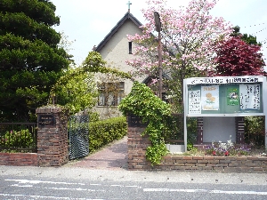 いつの間にやら水口に到着していたようです。どこが宿の入り口かよく分かりませんでした。美しいバランスの取れた形態の教会の前を通過しました。近代建築の黎明で有名なヴォーリズの設計とのことです。