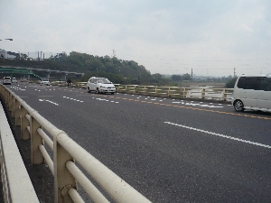川の渡し側から見ると、太い市道に横切られている細い小道が続いてます。この小道が旧東海道、変哲ない小道が何百年も続く幹線道だと思うと私は感慨深くしてしまうのです。