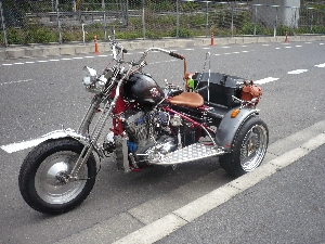 橋の袂にお兄さんが変わった車を置いて休憩中でした。個性的だったのでお願いして写真を撮らせてもらいました。アメリカ製だそうです。「大人の三輪車」やね。童心忘れないのは大いに結構!